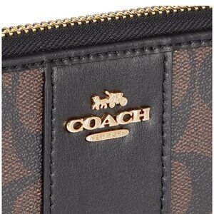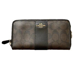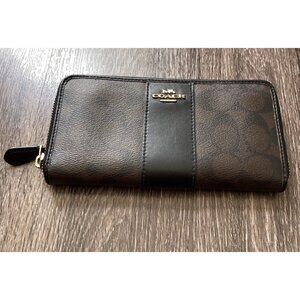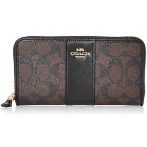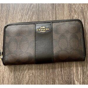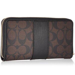 Coach Long Zip Around Wallet In Signature Canvas Brown Black Gold Tone Hardware
