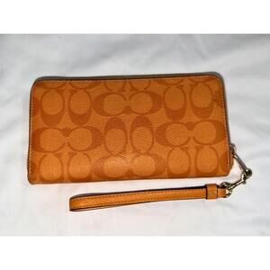 Coach Long Zip Around Wallet In Signature Canvas Orange