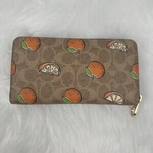 Coach Long Zip Around Wallet In Signature Canvas Orange Print Wristlet CAO92 NWT