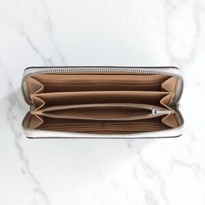 This Coach Long Zip Around Wallet is the perfect accessory for keeping your essentials organized in style! Featuring the iconic Coach signature canvas with a fun and playful blueberry print, this wallet combines fashion and function.