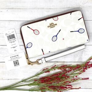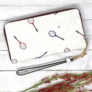 Coach Long Zip Around Wallet In Signature Canvas With Racquet Print Chalk C8385
