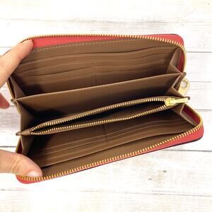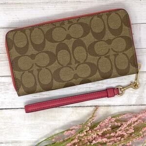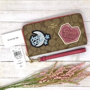 Coach Long Zip Around Wallet Signature Canvas Disco Patches Khaki Multi C66995