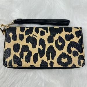 New With Tags, Coach Long Zip Around Wallet With Leopard Print In Leather + Wrist Strap CBT24 from smoke and pet free environment.