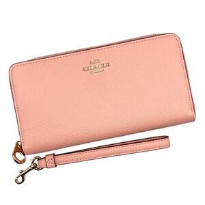 Coach Long Zip Around Wallet in Faded Blush Leather C3441