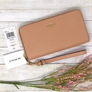 Coach Long Zip Around Wallet in Shell Pink Leather C3441