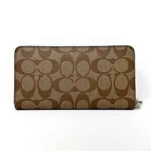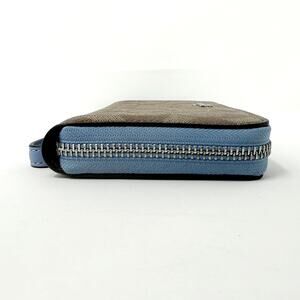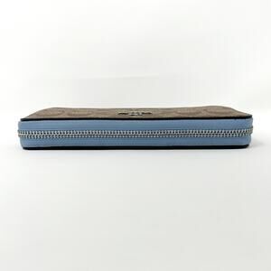 Coach Long Zip Around Wallet in Signature Canvas Khaki Marble Blue C4452