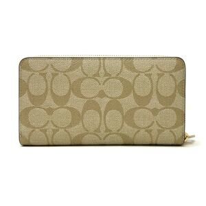 Coach Long Zip Around Wallet in Signature Canvas Light Khaki Chalk White C4452