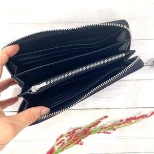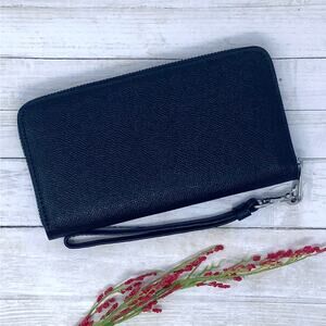 Coach Long Zip Around Wallet in Silver/Black Leather C3441