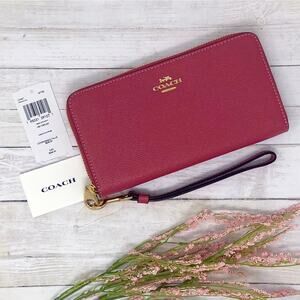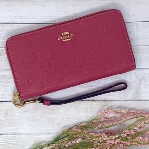 Coach Long Zip Around Wallet in Strawberry Haze Leather C3441