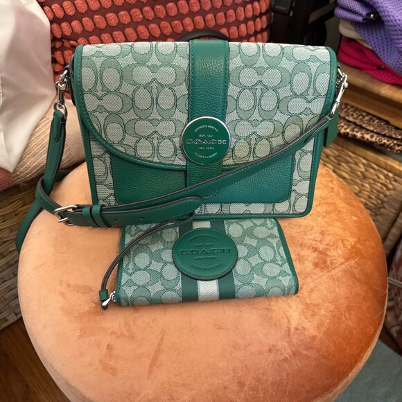 Coach Lonnie Crossbody in Green Signature Jacquard with Matching Wallet
