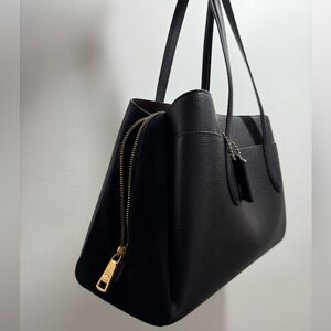Coach Lora Carryall Black Leather Shoulder Bag Gold Turn Lock Detail