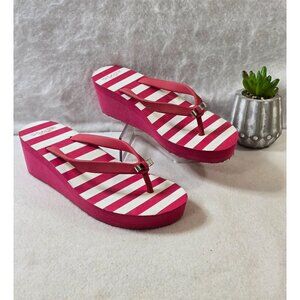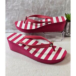 Coach New York Women's Pink White Striped Loralyn Wedge Flip Flop Sandals Size 7