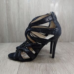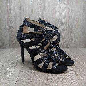 Coach Ludlow Strappy Glitter Caged Heels Sandals Black Leather Suede 6 A4529