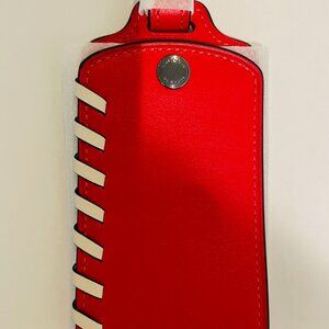 The Coach Luggage Tag with Whipstitch in made with high quality smooth leather. It's a stylish and durable accessory for your luggage. This luggage tag adds sophistication to your travel gear. The sport red and chalk color combination gives it a unique and eye-catching look, making it easy to spot your luggage on the carousel. A perfect personalized touch for your luggage.
