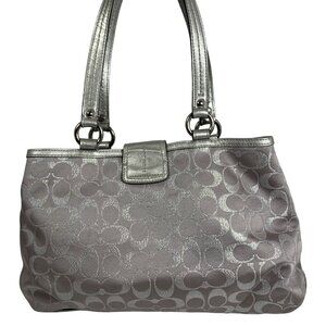 Coach Lynn Soho Signature C Jacquard Tote Bag Purse Metallic Silver F18912 + Fob