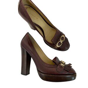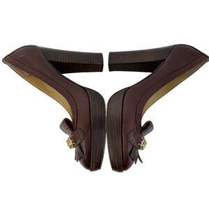 Coach Lynne Platform High Heels Size 6B Brown Leather Gold Hardware Pumps 7309