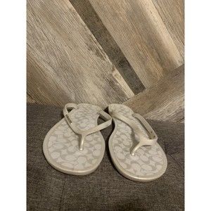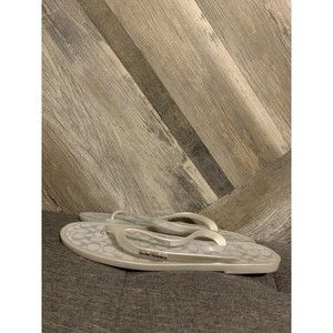 Coach Lyra Womens Size 10 B Jelly Sandals Flip Flops Silver/Gray Signature A0653. Shoes are in preowned great condition. No major damage, scuffs, stains, rips. Tread is in great condition as well. Photos show actual condition of shoes for sale. Please be sure to look through all pictures for all imperfections and flaws. Smoke free storage. One day shipping. 28