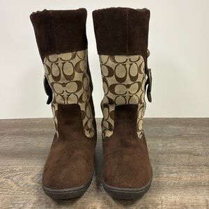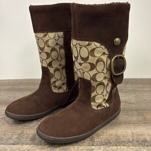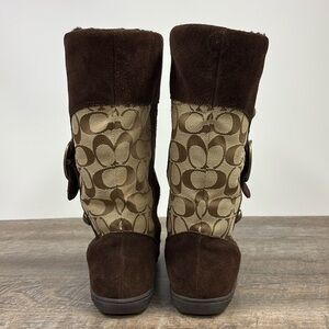 Coach MEYER Khaki / Chestnut Brown C Logo Shearling Lined Winter Boots Size 7