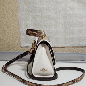Signature coated canvas, smooth leather and snake-embossed leather| Inside multifunction pocket| Turnlock closure, fabric lining| Top handle with 2 3/4" drop| Outside slip pocket| Detachable strap with 21 1/4" drop for shoulder or crossbody wear| 5 3/4" (L) x 4 1/2" (H) x 3" (W)