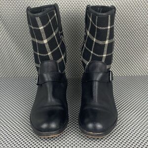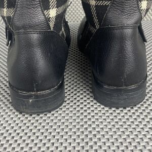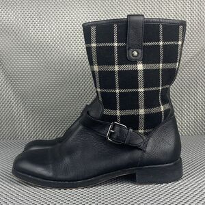 Coach Mackie Boots Womens 5 B Black Leather Wool Neoprene Plaid Mid Calf Casual