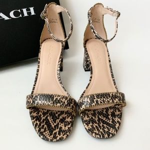 Coach Maddie Womens Bead Chain Embossed Snake Leather Ankle Strap Block Heels Animal Print Sandals