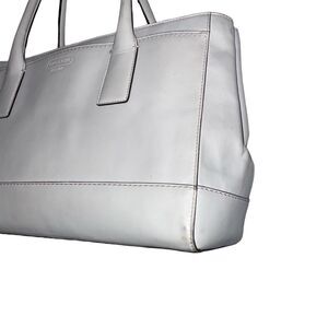 * Featuring a Stunning Structured Style made from All-White Genuine Leather, Gold Hardware, and a Beautiful Lavender Lining Interior
