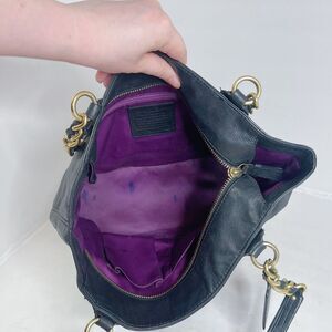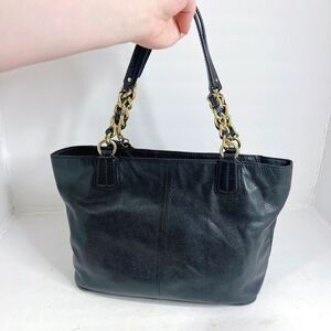 Coach Madison Black Leather Tote Bag Shoulder Bag Gold Chain Purse