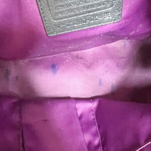 - Condition: There are some minor spots of discoloration (pic 9), some minor wear to the bottom of the bag (pic 10), some minor tarnishing to the hardware (second to last pic), and some stains to the lining of the bag (last pic).