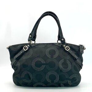 Coach Madison Dotted OP Art Black Signature Jacquard Sophia Satchel