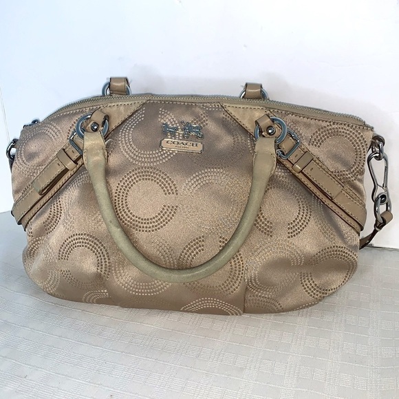 The dual straps and detachable shoulder strap are in be loved condition , lining inside bottom has some spots small Includes the and price will reflect this , detachable strap