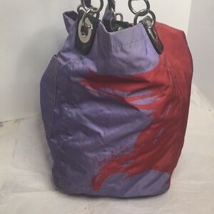 Handcrafted with water and stain resistant LUXURIOUS Top Quality Nylon Fabric in STUNNING Red & Purple Combination accented with awesome Leather Trim & Studs Absolutely WOW! Bag is beautifully detailed with a girls face in true COACH fashion, This is part of Madison Collection! Limited Edition. From ‘09 . This is really pretty, light and handy!