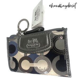 Coach Madison ID Skinny Wallet Keychain 47250 Optic C Sequin Gray Blue Fabric