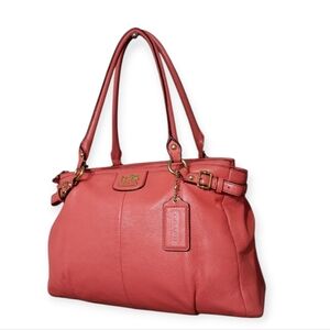 Coach Madison Kara Carryall Featuring Brass Hardware, Four Compartments Two Zip, Clean Inside & Out No Rips Tears Or Odors & Measuring 15" X 9" X 4" With 10" Double Rolled Handle Drop (All Approximate) Fast Shipping Smoke and Pet Free! ALL OFFERS WELCOME! Ask Questions & Thank You For Visiting Please Come Back Soon NEW BAG STYLES EVERYDAY ✨️ 💖