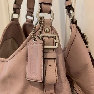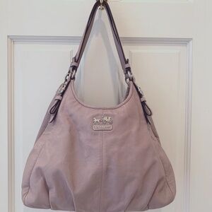 Soft, buttery taupey lavender leather from Coach retail store. Bag is in good condition. Some light wear on the bottom. Completely clean inside and out.