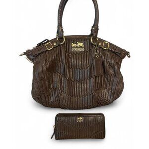 Coach Madison Lindsey 18620 Brown Gathered Leather Satchel + Matching Zip Wallet