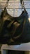 Features silver-toned hardware, including chain details on the straps. The bag has a pleated, hobo-style design and multiple interior compartments. Sleek design and durable material make it a must-have accessory.