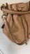 Effortlessly elegant, this Coach Madison Marielle shoulder bag combines luxury and functionality. Crafted from soft tan leather with an intricate perforated diamond pattern, this standout piece features a drawstring top, gold-tone hardware, and a silky lavender satin lining. Gently used, not any damage on the leather, a little sign of using inside , Some rubbing on the gold hardware at the strap attachment — shown in close-up photo. Still fully functional and looks great overall! (check the photo and video)