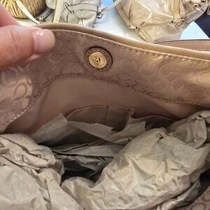 Shimmer Zipper Pockets Bag Satchel Leather Shiny Silver Classic Classy Gift Holiday Gifts Present Classic Collectible Coach Gate Horse Carriage Gray Grey Gathered Signature C Letter