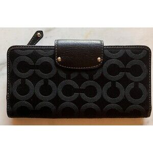 Coach Madison Op Art Black Slim Checkbook & Wallet Logo Snap Close Coin Holder