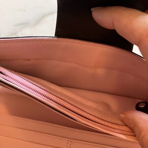 Coach Madison Op Art Black Slim Checkbook & Wallet Logo Snap Close Coin Holder Leather Accents Light Lavender interior