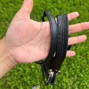 Features polished silver tone hardware, removeable leather cross body strap, leather Coach hang tags, Coach metal logo on front, tan fabric lining, two slip pockets on one side on inside and zip pocket on the other side. Coach crest inside the bag.