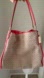 Design: The bag features a beige canvas body with a brown "Op Art" signature C logo pattern. The trim, handles, and hang tag are a coral leather.