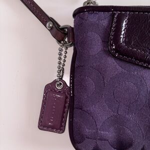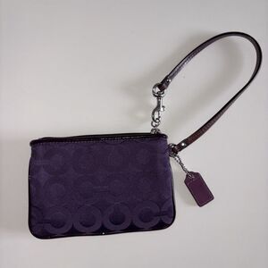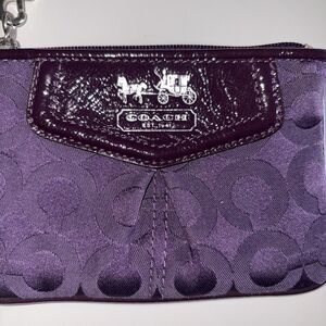 Coach Madison Purple Op Art Wristlet Clutch Classic Jacquard Leather Charm