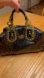 Chic Coach satchel in black. Adorned with gold studs. Perfect for stylish outings. Can be styled with center handles by buckling the sides or releasing the sides and slinging over a shoulder with the long strap.