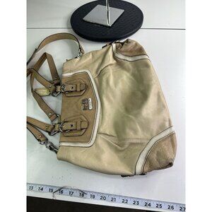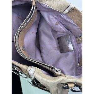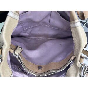 The Coach Madison Spectator Leather Carryall Bag 14626 is a stylish and practical shoulder bag designed for women. Made with high-quality leather and featuring a silver hardware color, this bag exudes a classic and sophisticated look. The exterior color in beige and the lining color in purple add a touch of elegance, while the zip and magnetic closure ensures your belongings are secure. Perfect for everyday use, the Coach Madison Spectator also includes a convenient bag charm and is part of the iconic Coach Madison product line.