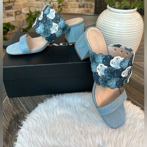 Coach Mae Mule Blue Floral Sandals