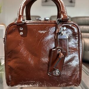 Sophisticated Coach Cube Limited Edition Rouge in rich dark brown leather. Features sturdy handles and sleek design. Ideal for professional use.