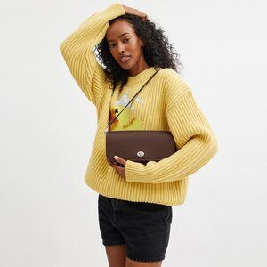 Glovetanned leather Inside zip and multifunction pockets Turnlock closure leather lining Outside open pocket Detachable strap with 12 drop Detachable chain strap with 8 3/4 drop 10 1/4 (L) x 4 3/4 (H) x 2 1/2 (W) The Coach Originals Style No. CW641.