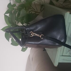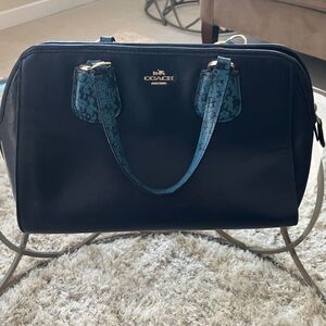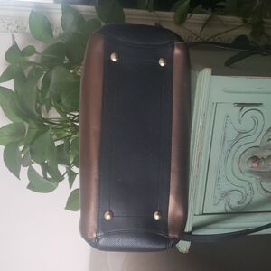 Coach Margot Carryall Crossgrain Leather Satchel Black Bronze Metallic Bag F35923
