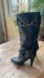 Coach “Maribelle” Black Leather Heeled Boots with Gold Buckles